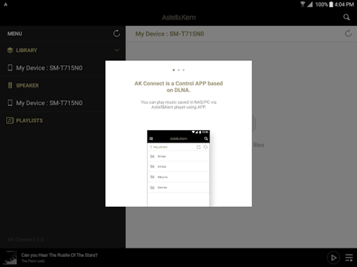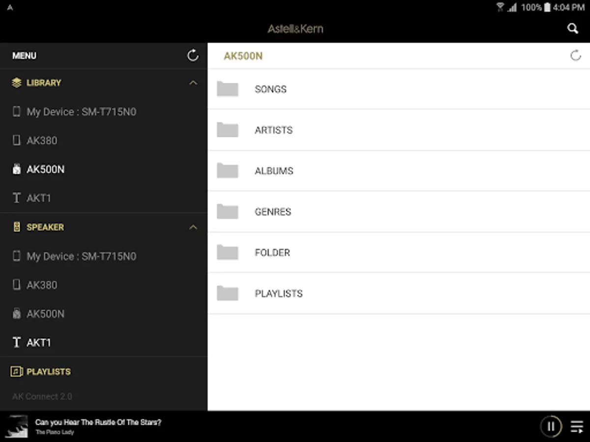 Can play back music data on NAS and PC from the AK products with the AK Connect.