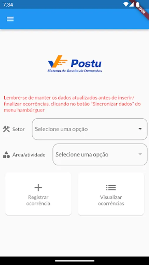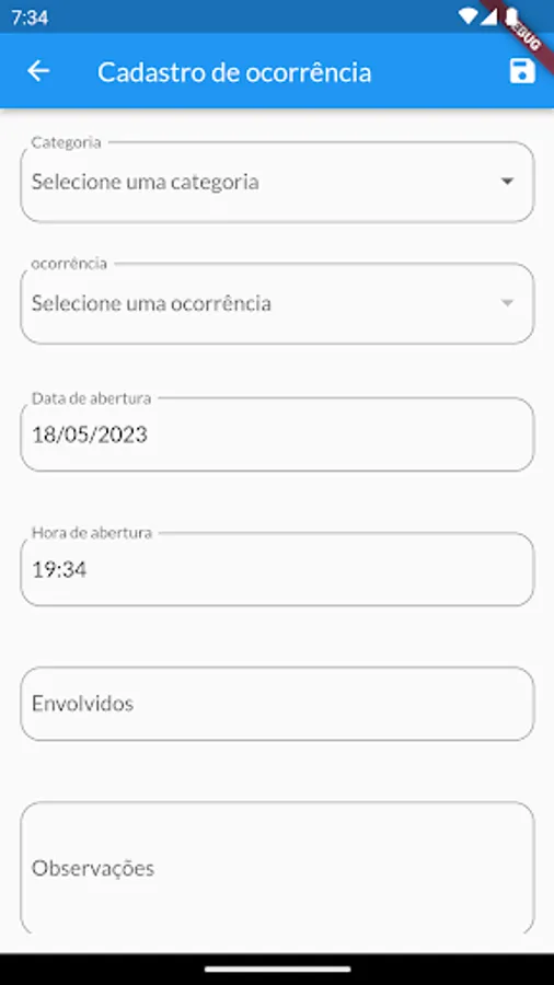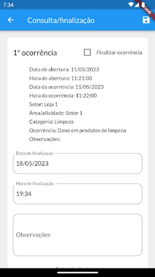 Application for recording occurrences within companies, where it is possible to launch the occurrence with textual information and images, synchronize with the administrative environment, register budgets and finalize the occurrences.