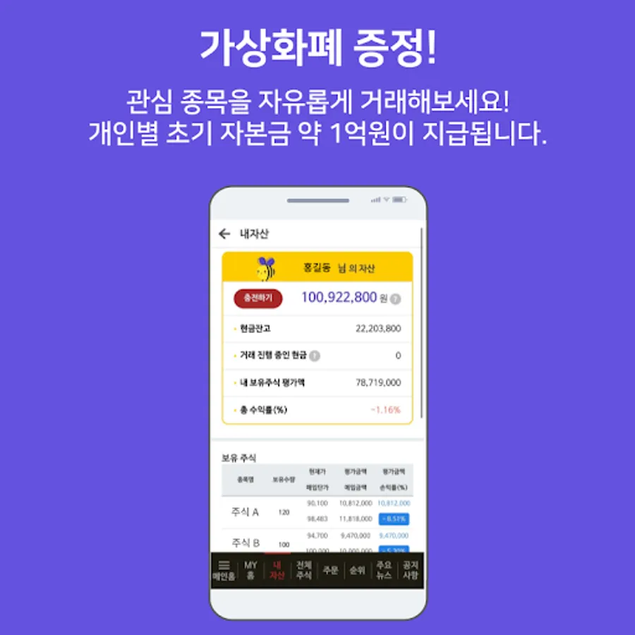 사회적가치 가상 주식 거래 플랫폼입니다.
