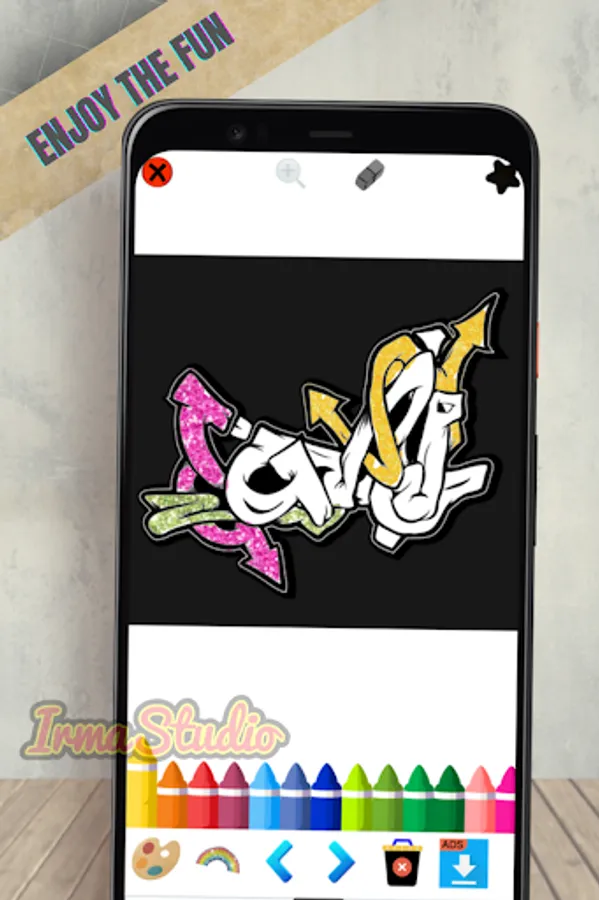 Then tap to the pictures to give the color! Use the undo and redo to change the color! Zoom in and zoom out to color every detail! The last, save and share the graffiti coloring to your friends!