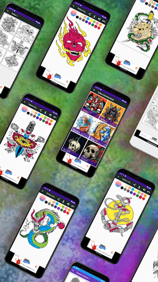 Our Tattoo Coloring Book for Adult in this fun free games is intuitive and easy to use. Choose colors, images, and designs with just a tap. this free coloring book for adult is like a therapy session, get coloring and enjoy your free time now and relax your mind.