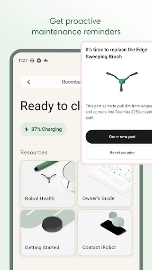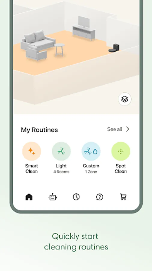 Get ready to elevate your cleaning game with the intuitive Roomba® Home app! Easily start, stop, or schedule your robot, adjust cleaning settings, customize detailed maps of your home, and create personalized cleaning routines. Dirty rooms are noted based upon previous cleaning jobs to help you clean more effectively without having to think about it. See where and how your robot is cleaning in real-time, proactive product maintenance, and seamless smart home integrations. From setup to daily use, the Roomba® Home app offers intelligent recommendations and a user-friendly experience to keep your home spotless with minimal effort.