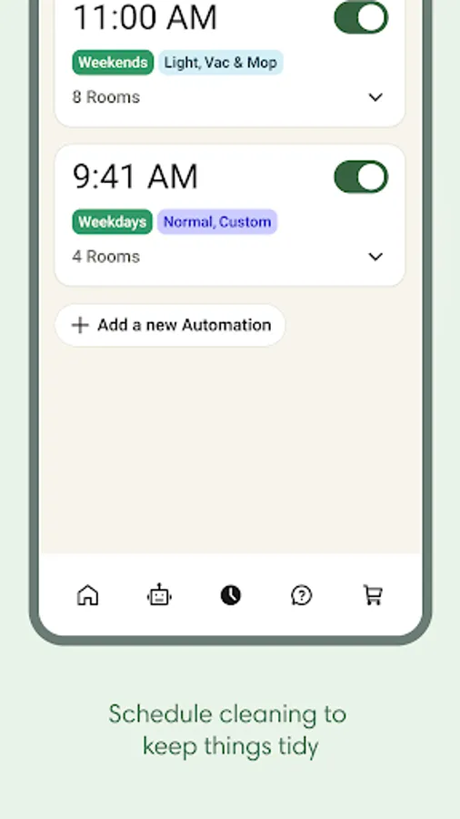 • Cleaning Routines: Effortlessly create cleaning routines with Routine Builder. Select which rooms to clean, adjust settings, and turn on advanced scrubbing to clean just the way you like.