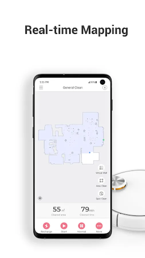 1) Real-time Mapping. Your LaserSmart robot vacuum will build a map of your home in real time while cleaning, allowing you to monitor each clean.