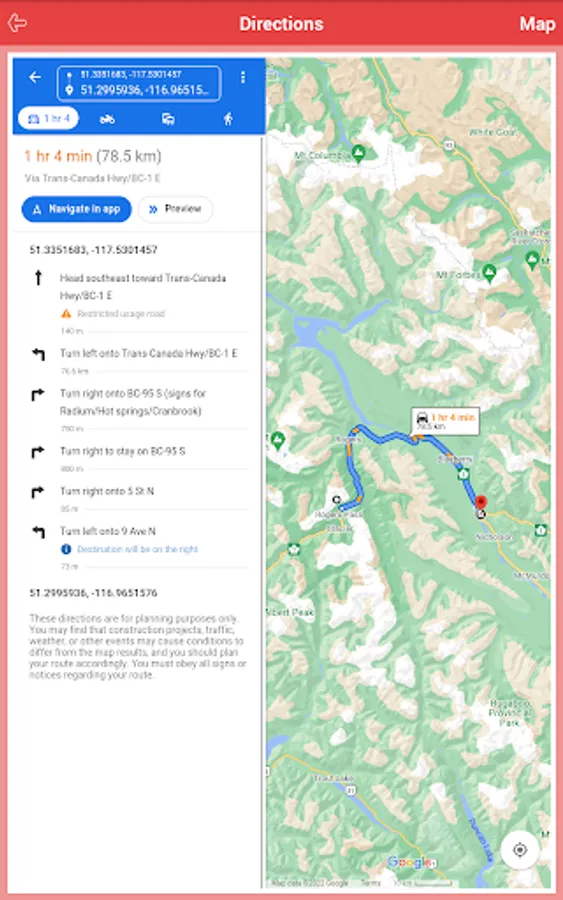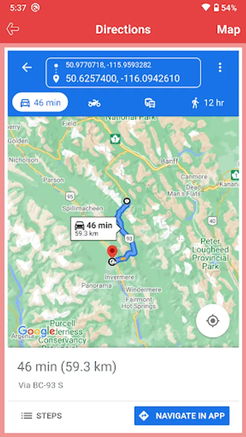 >> Get directions from current location to Park location.