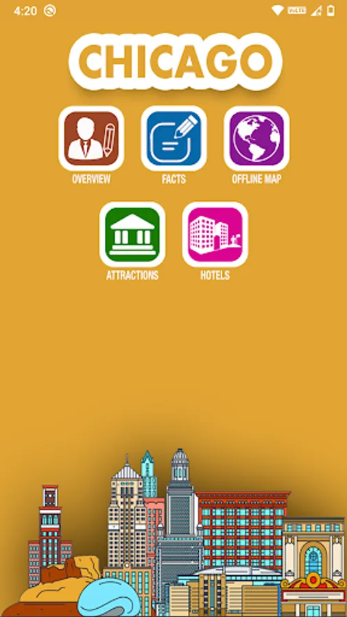 This is a premier Android app catering to almost every information of Chicago. It features 5 different modules providing information of the Chicago like Overview, Facts, OfflineMap, Attractions, Hotels.