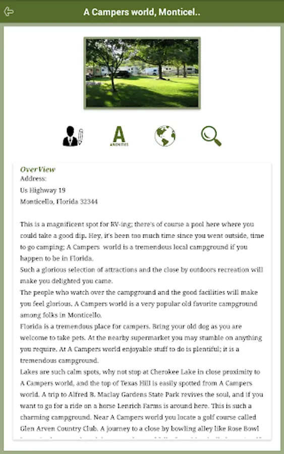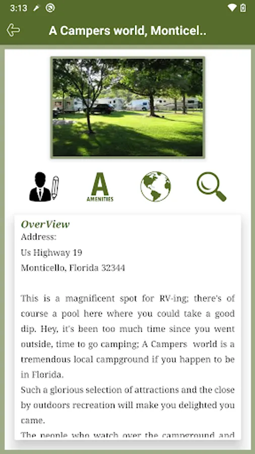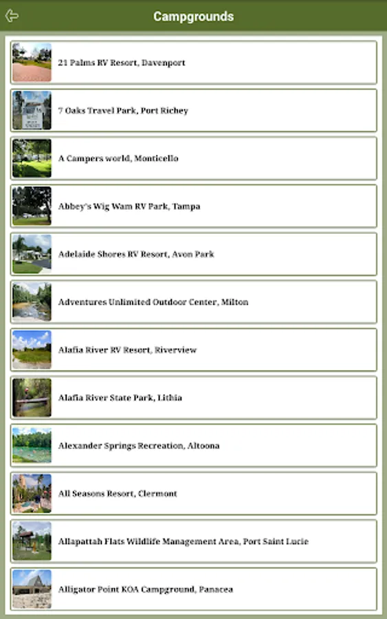 Florida State RV Parks & Campgrounds provide OFFLINE detailed information about the all Campgrounds and RV Parks.