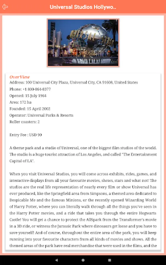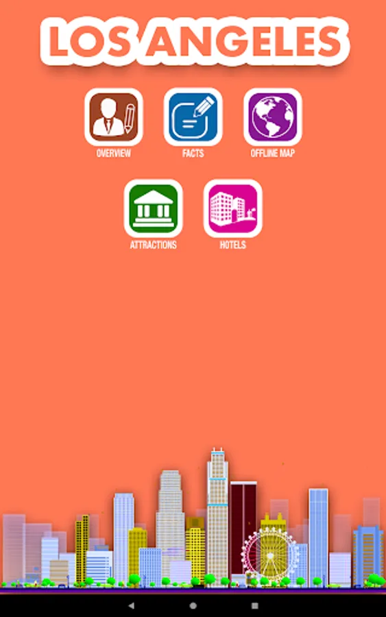 This is a premier Android app catering to almost every information of Los Angeles. It features 5 different modules providing information of the Los Angeles like Overview, Facts, OfflineMap, Attractions, Hotels.