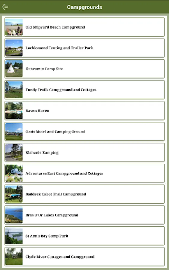 >> Lists the all Campgrounds in Nova Scotia Province.