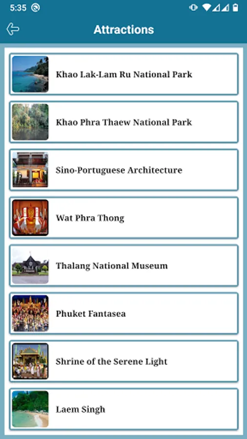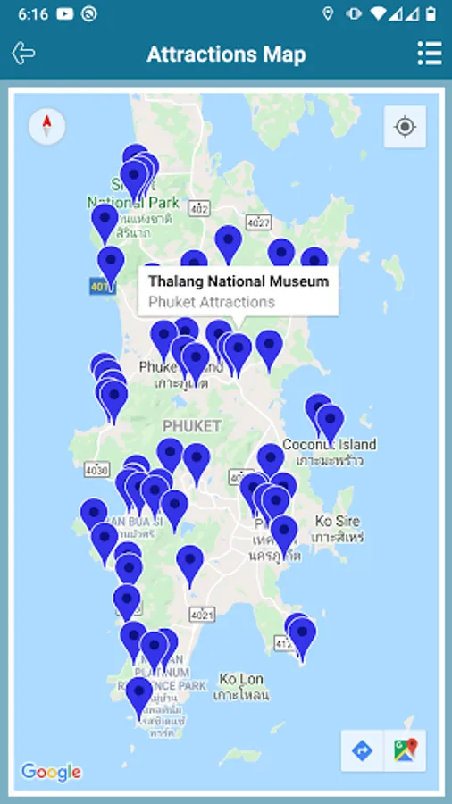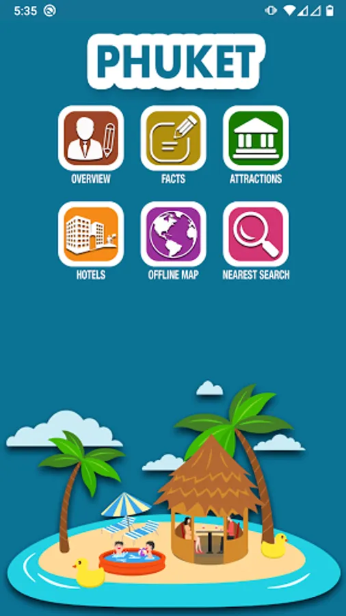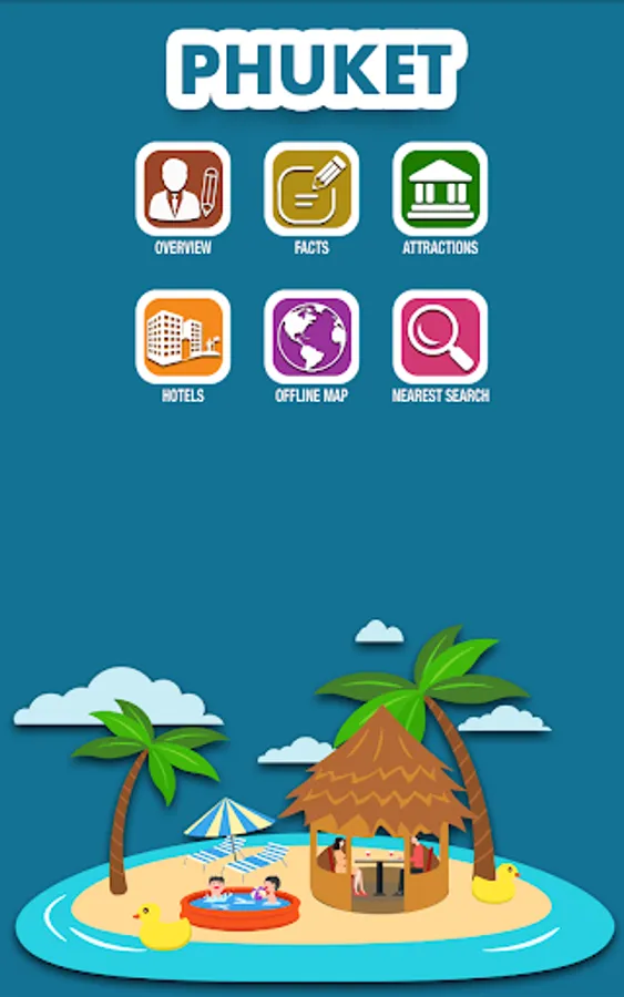 This is a premier Android app catering to almost every information about Phuket Island. It features 6 different modules providing information of the Phuket Island like Island Information, Island facts, Attractions, Hotels, OfflineMap, NearSearch.