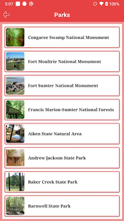>> Lists the all State and National Parks in South Carolina State.