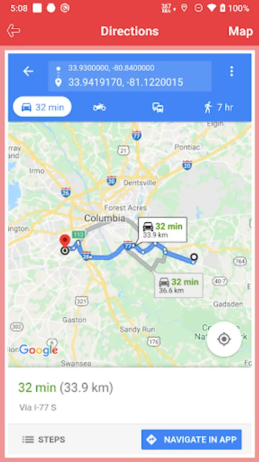 >> Get directions from current location to Park location.