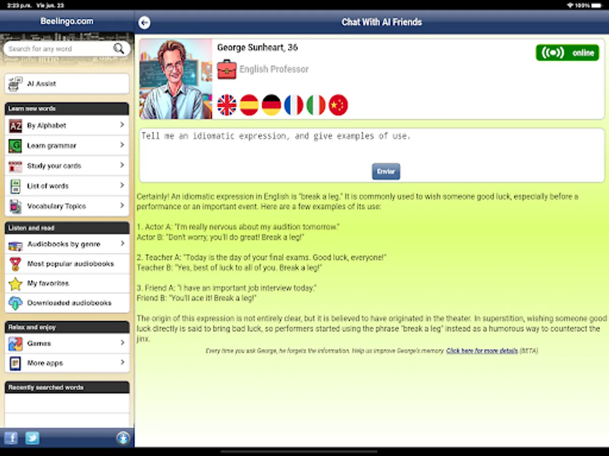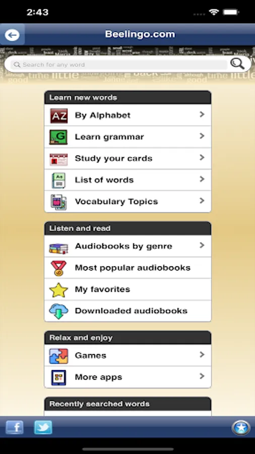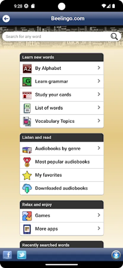Beelingo is the ultimate English application! Download it now and discover a new way of learning. With a powerful dictionary, exciting audiobooks, and interactive lessons, you'll embark on an educational journey that will lead you to master English like never before. Don't miss the opportunity to become a true English expert with Beelingo.com!