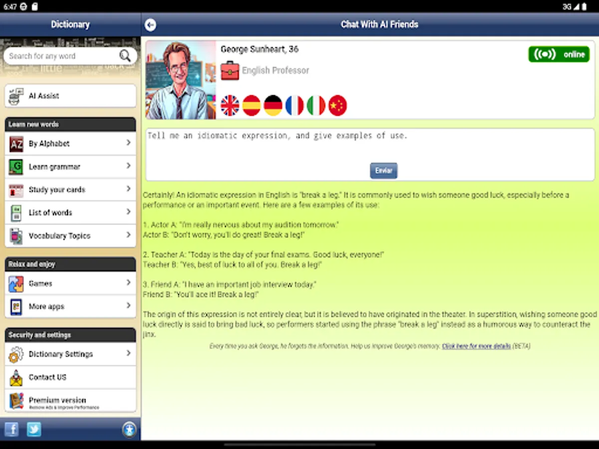 - But we don't stop there. Our application also features a memory card system designed to facilitate your learning. You can create your own memory cards and word lists for personalized studying.