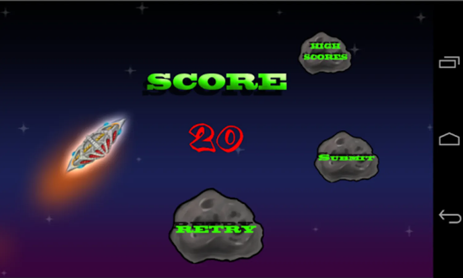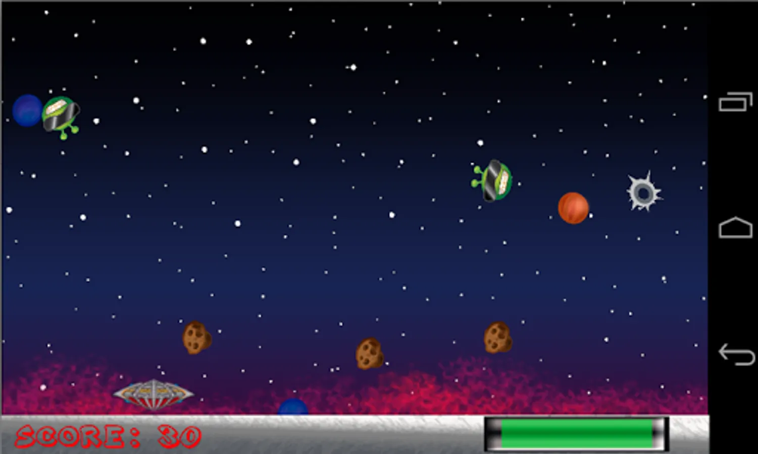 Using touch screen controls, you control your spacecraft on a mission to destroy all planets. However, beware! As you are on your mission, you are also forced to avoid incoming asteroids and aliens in order to continue on in your mission. Integration with Amazon Game Circle allows players to unlock achievement levels, increasing their player experience points within their account.