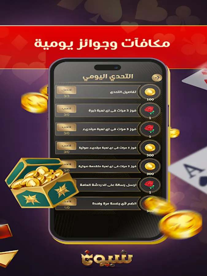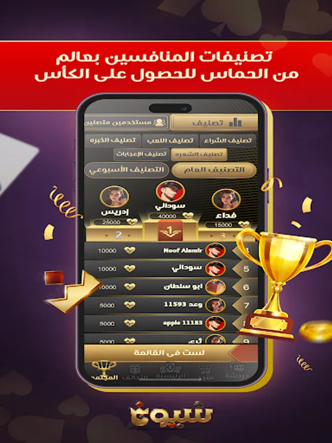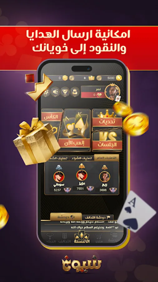 Download the Sheikhs application and live the enthusiasm and fun with the most enjoyable baloot game ever, meet new friends, and enjoy many free features within the application.