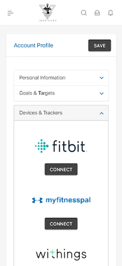 - Connect to trackers and devices and record your progress,