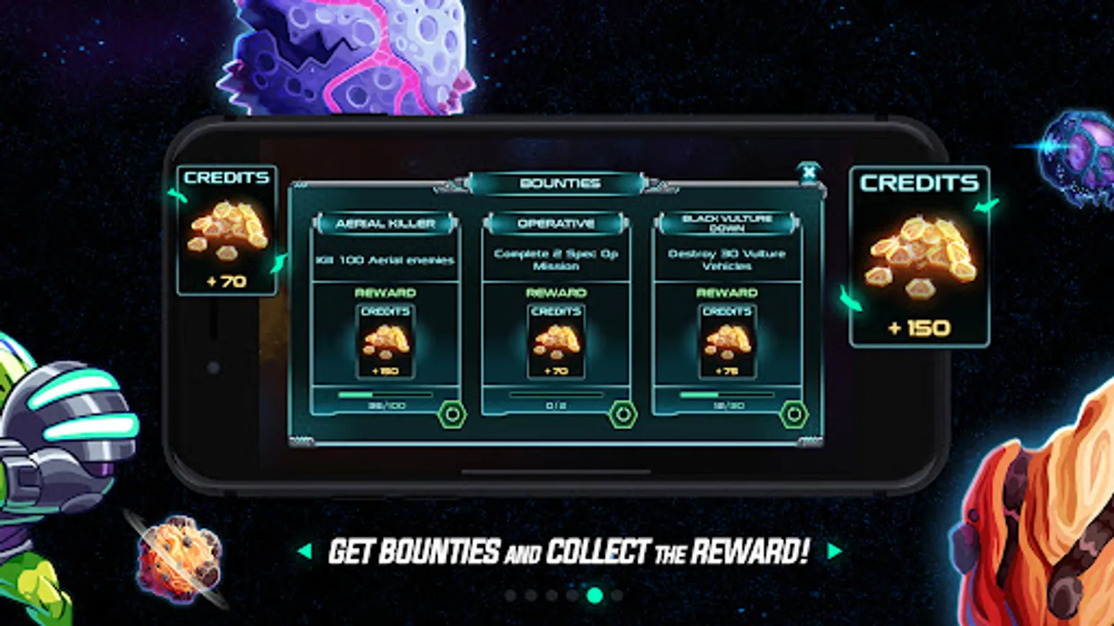 Enjoy unique space missions and special operations on exciting new planets - each battlefield has its own space terrain, style, action, enemies, and conditions. Learn how to beat them across a galaxy with unique planets!