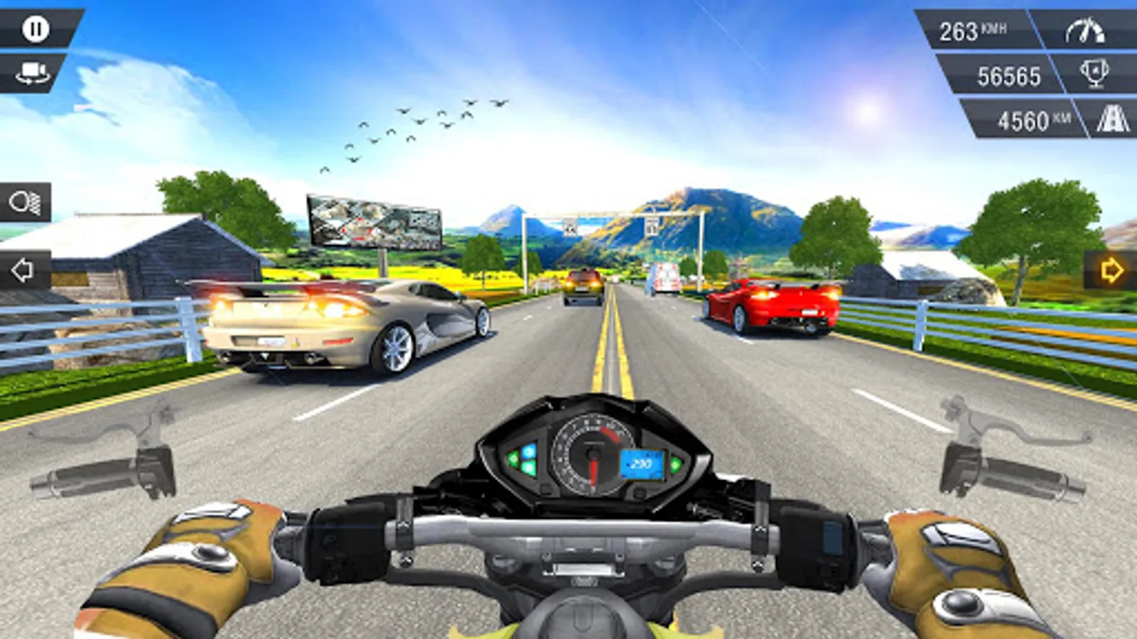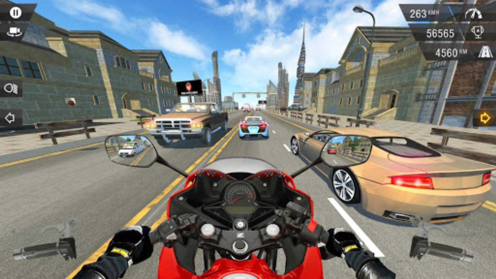 Start your motorcycle racing game to climb up the career leader board to become the best moto racer of town. Ride through highway traffic with advanced motors of now a days in this moto racing game. This moto racing game has the best graphics and motorbike physics to dodge the insanely high speed traffic. Show your skills to compete your own best score as this motorcycle games has all the bike racing game features.
