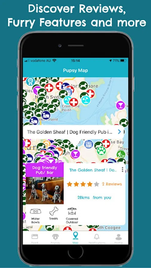 Simply browse the map and use the interactive icons to read more about the venue. Read and leave reviews to learn and share. On Pupsy all reviews are written by the dog’s themselves so you will always have an idea what your pooch can expect.