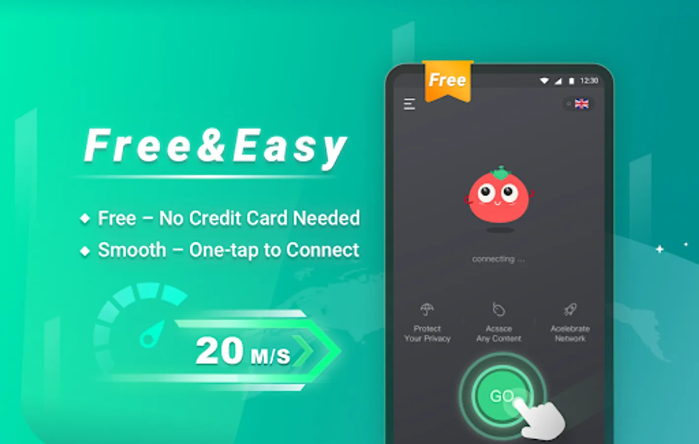 Free VPN Tomato is easy to use (it only takes one tap to connect), is free forever, offers unlimited speed, has no usage time restrictions, and does not require a credit card or additional permissions.