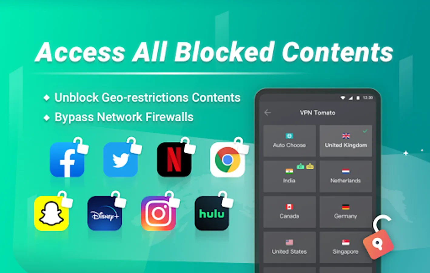 You can unblock any sites, app or games with Free VPN Tomato. Bypass government censorship and geo-restrictions to access social networks such as Facebook, Twitter, YouTube, Snapchat, PUBG, Free Fire, Twitch, etc., or any other blocked websites from anywhere! Watch TV, movies and live sports from any country no matter where you are.