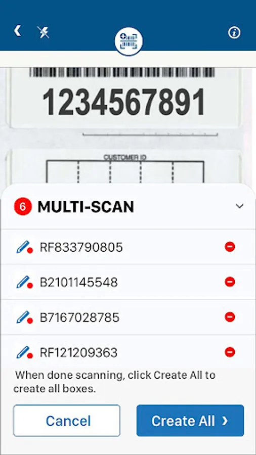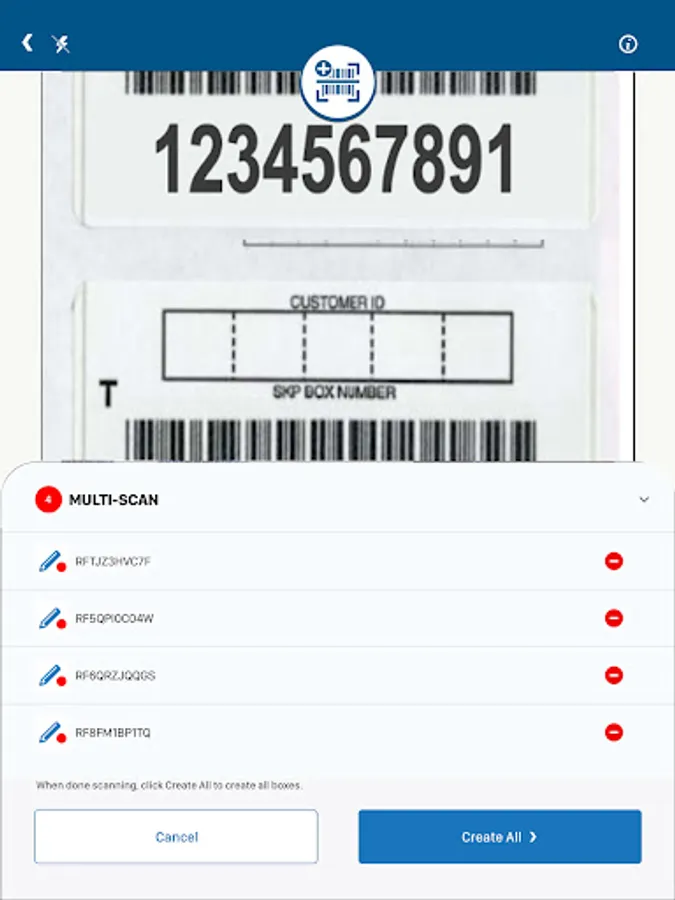 • Scan Iron Mountain barcodes to create new box records