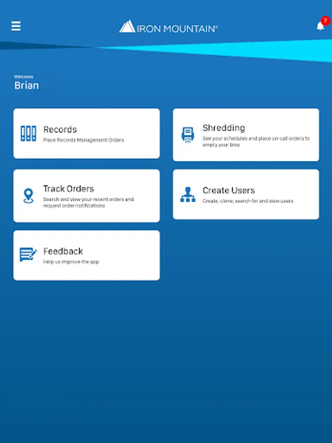 A valid Iron Mountain Connect™ or Iron Mountain ReQuestWeb™ username and password are required to log on to the Iron Mountain Mobile app.