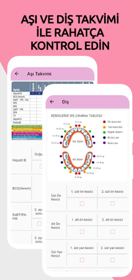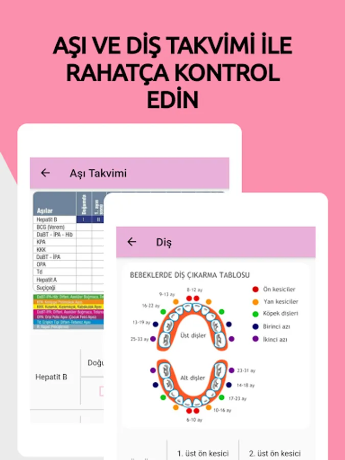 - With the vaccination and dental calendar, you can see and record when your baby should be vaccinated, and you can track and record the months in which their teeth may erupt.
