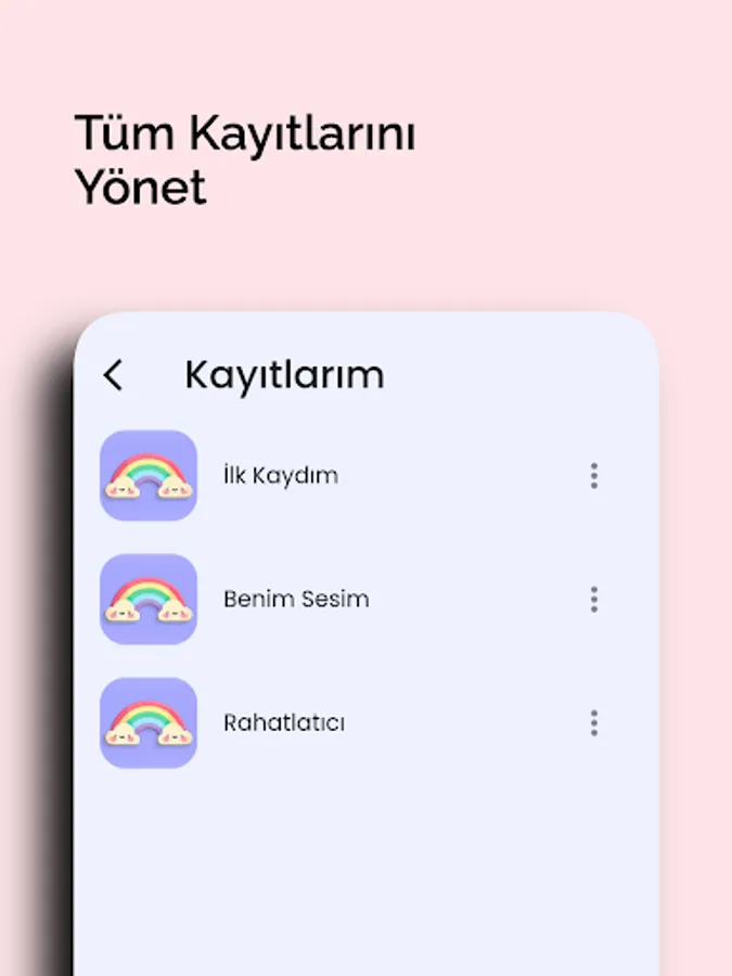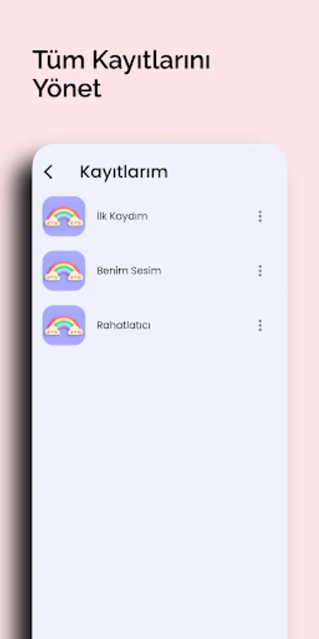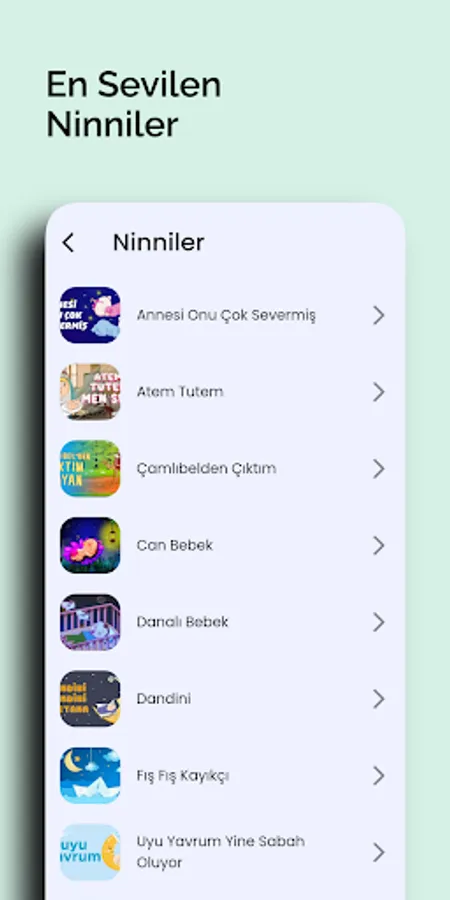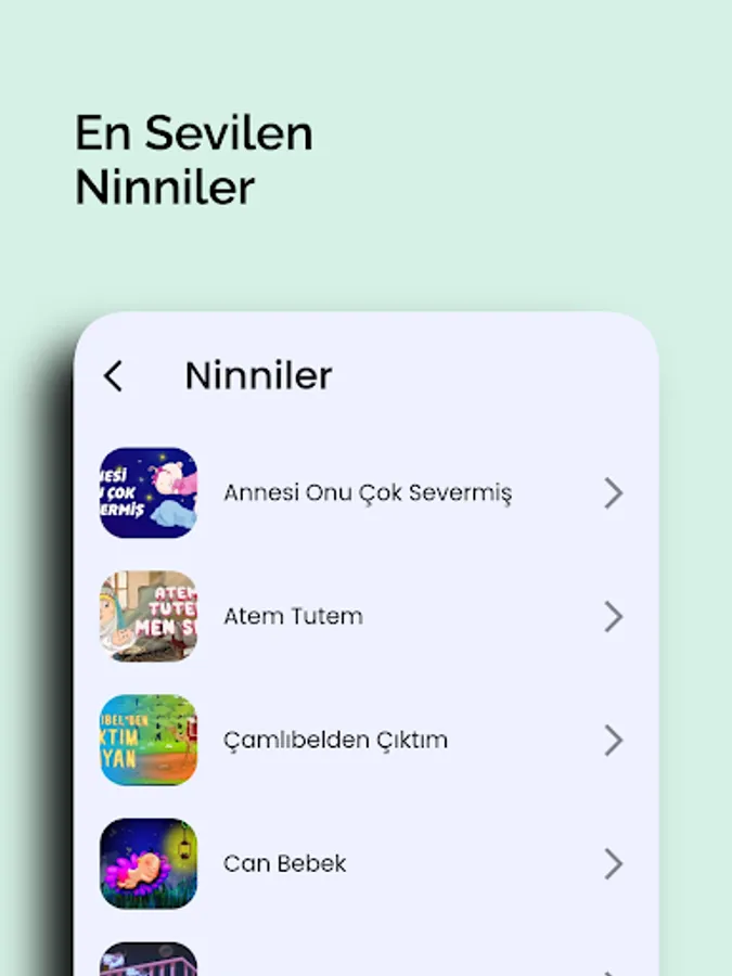 There are areas such as ... There are beautiful sounds, lullabies and songs in these areas. Our users can record and use their own voices if they wish. Our application is completely user-oriented and includes a simple and elegant design. It is very easy to use, no frills and just for you!