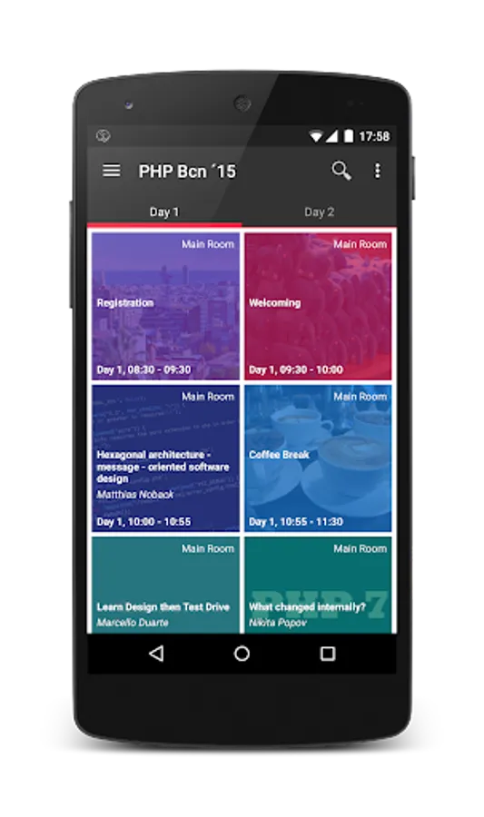 With the official implementation of the PHP Barcelona Conference 2015 you will have at your fingertips all the information of the event. From the conference program up to the minute information about the sponsors. And thanks to the utility of networking, you'll see the list of attendees and share your data with any of them. And of course, you will see all the photos of our automatic photocall.