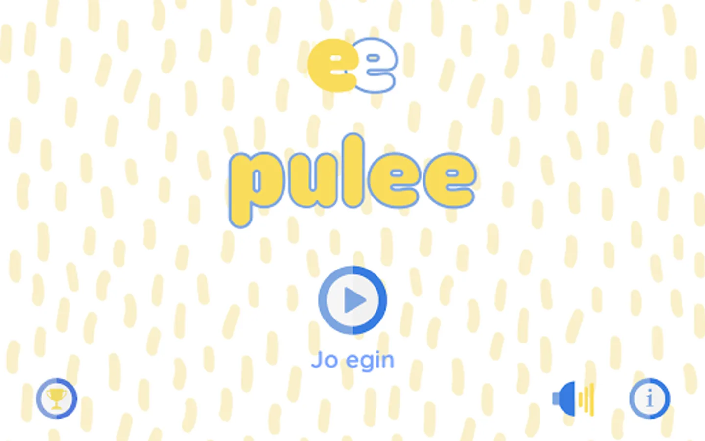 Pulee, jolas hezigarria da 1 eta 2 urte arteko motrizitate haurrek finaren Garapena Lantzeko egokitua. Txikienek, ingurune digitalean oinarrituta, ukitze eta arrastatze Bidez system, eguneroko elementuekin joko pantaila inguruan jolastuko dute.