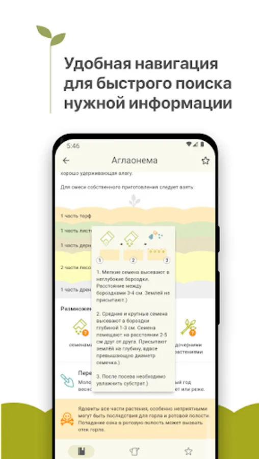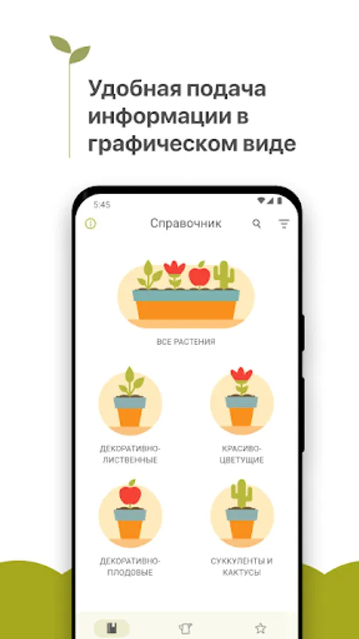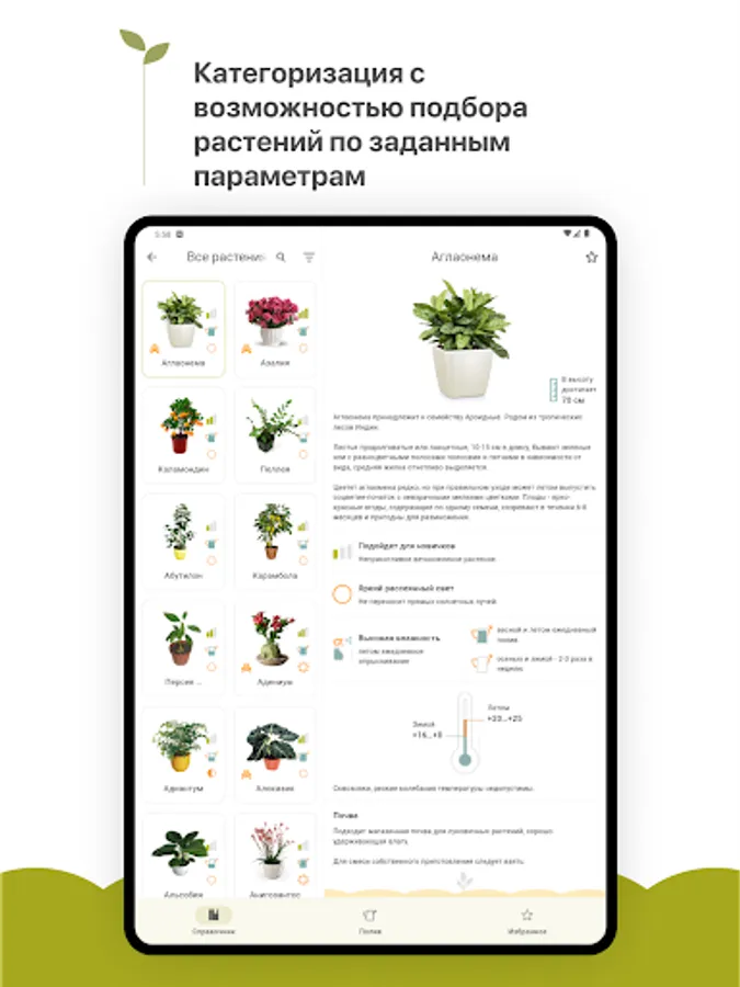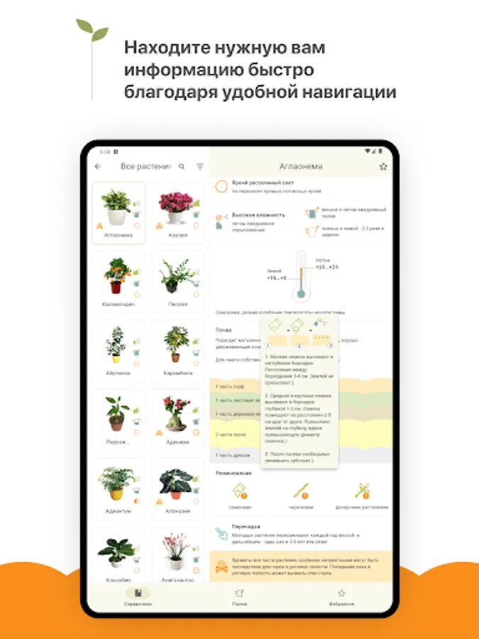 Handbook for home care of plants has never been so easy. We have worked out the design in such a way that you do not have to wade through a long string of text to find out how often you need to water your pet window as needed sunlight and how to propagate plants. All information is presented in an easy graphical format with a minimum of text. Just look at the screen and you will not have problems.