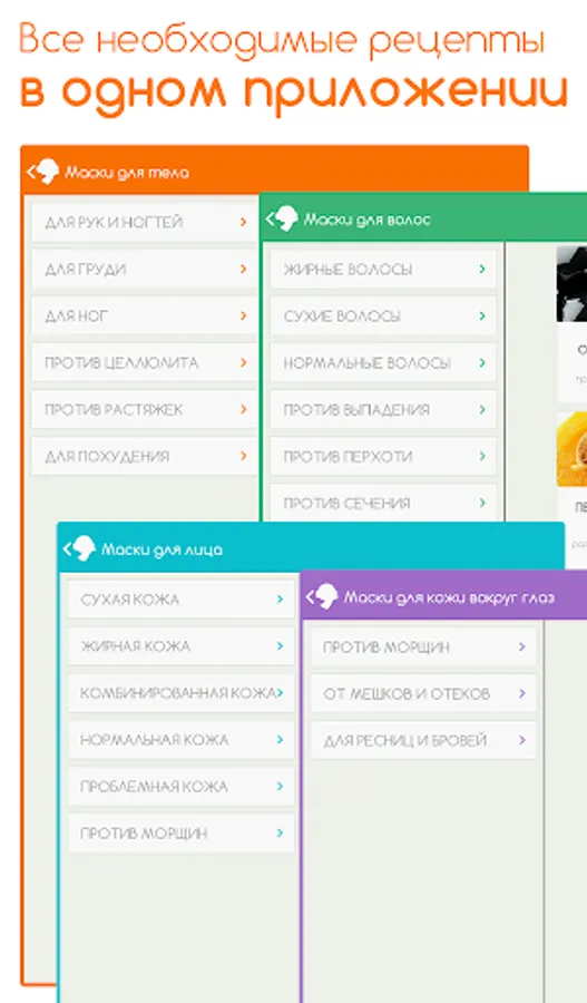 Use a delicious, fresh and scented masks every day and you will achieve the desired result - a velvety skin, hair density, the disappearance of pimples, leg slimming, and more!