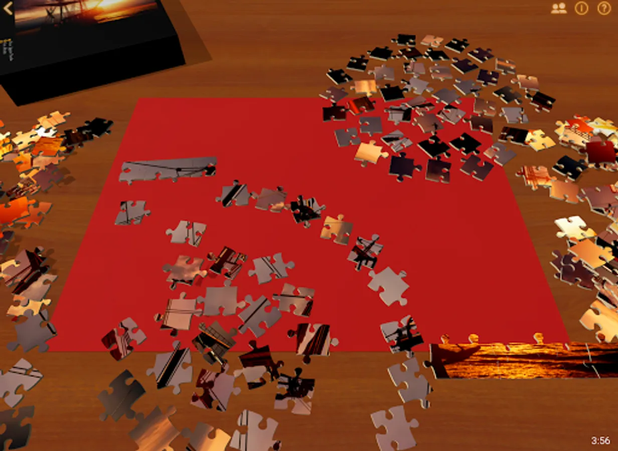 Jigsaw puzzle fun - on your own, with friends and family, or with new puzzle pals from around the world! Voice chat lets you feel like you're all sitting around the same table. Choose from millions of beautiful images of all kinds, create custom puzzles from your own pictures, or generate any puzzle you can imagine just by writing a short description! Features 3D pieces and physics for a realistic puzzle-making experience, and the ability to automatically sort pieces by edges or color.