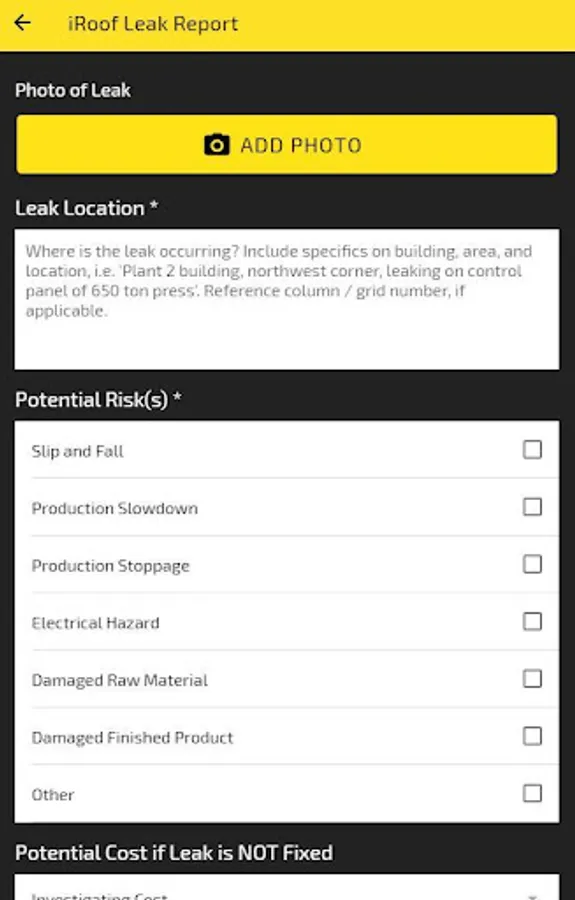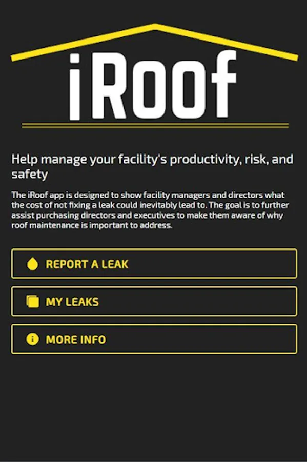 The iRoof app is designed to show facility managers and directors what the cost of not fixing a leak could inevitably lead to. The goal is to further assist purchasing directors and executives to make them aware of why roof maintenance is important to address.