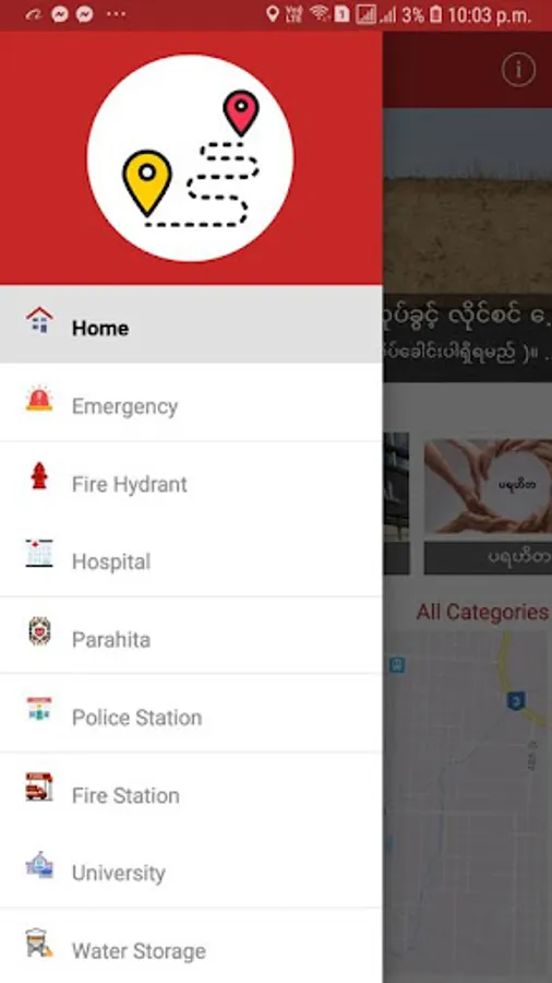 So,people can find locations of hospitals , fire stations and police stations when emergency cases occured anywhere in Mandalay by using IRoute. And people can also find specific information of foundations when they want to donate donations.
