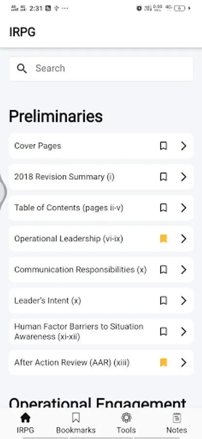 - Bookmarks. With one tap, you can bookmark any chapter in the IRPG for quick reference in the Bookmarks tab. No more dog ears, no more hunting to find typing charts or weather tables.
