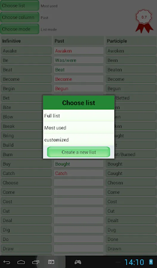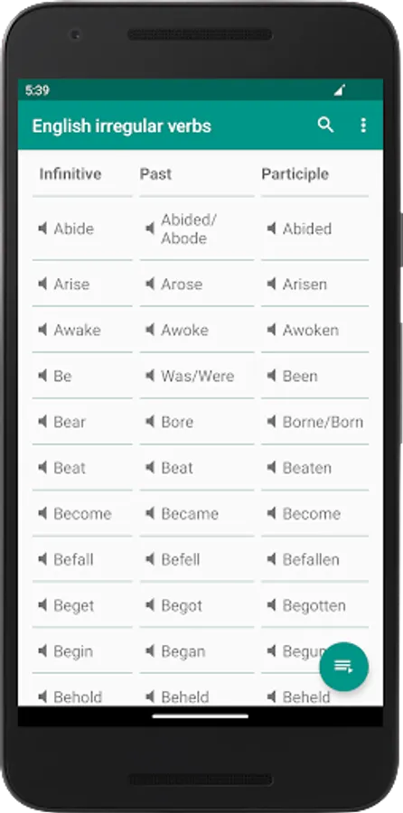 Complete list of english irregular verbs. Each verb has the pronunciation for all its tenses.