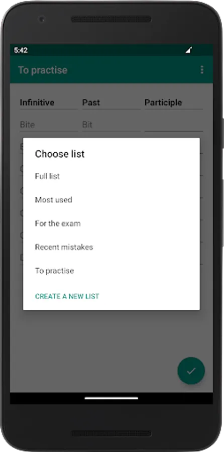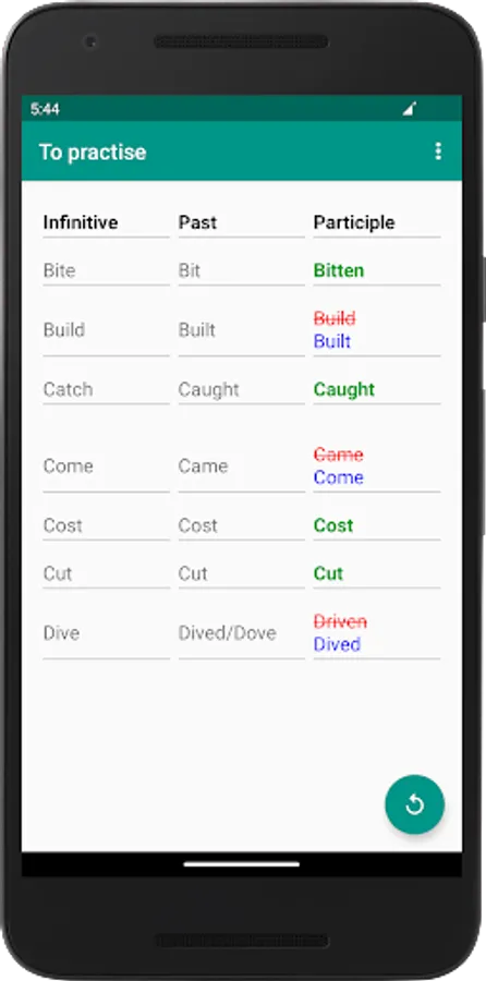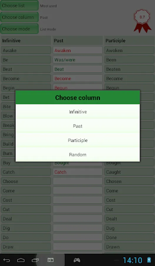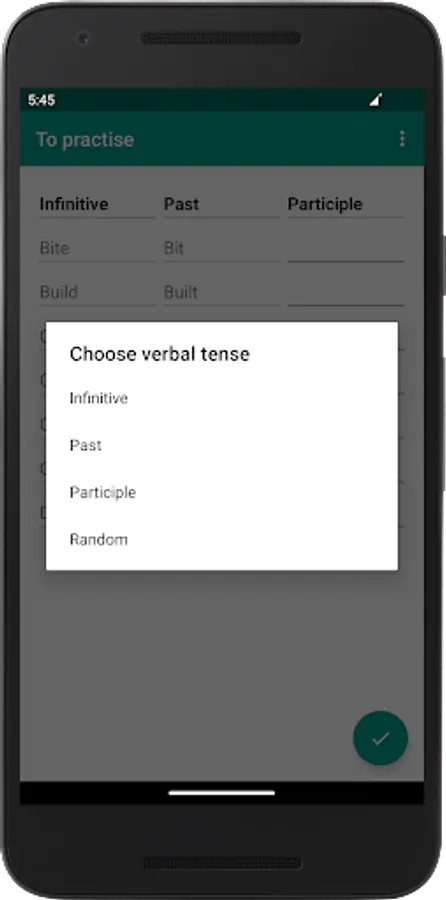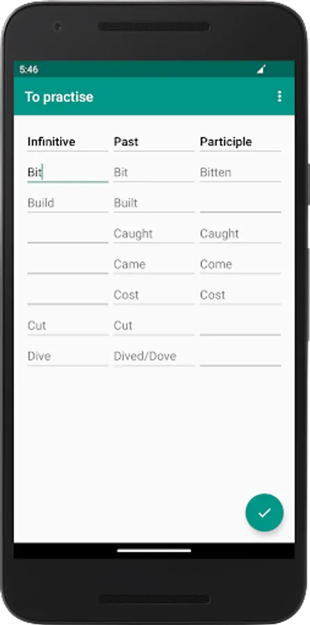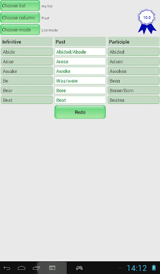 There is also a "game mode" for practicing tenses that consists of completing the missing tense for a given verb.