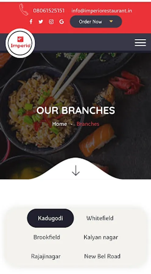 Imperio Restaurant" is located at Kalyan Nagar, kundalahalli, kadugodi, Whitefield, Rajajinagar and New Bel Road Bangalore, Karnataka serving the best quality of food and beverages. Our food is delicious and the presentation is beautiful, the service is impeccable and the prices are just right. The great ambience, exceptional food and excellent service make for a remarkable dining experience at our restaurant.