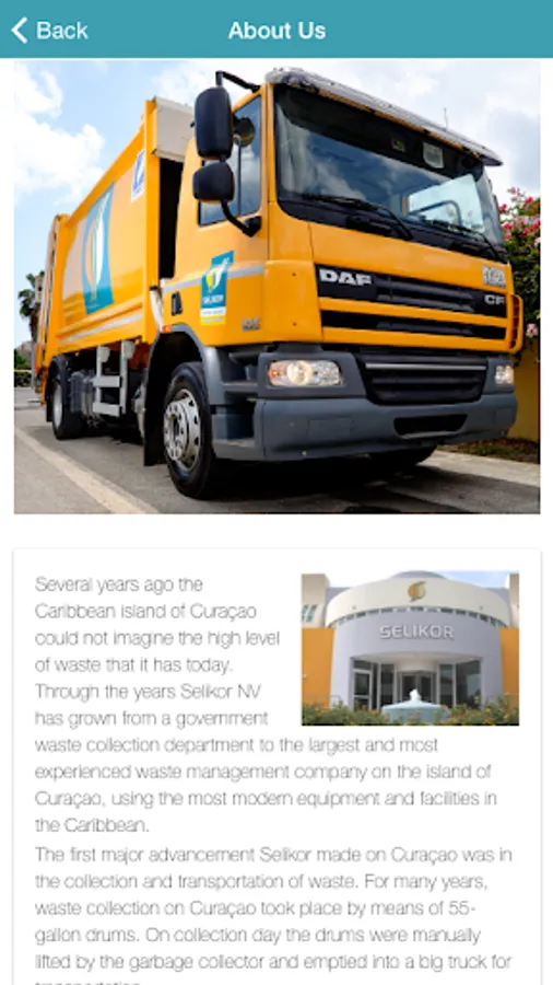 Selikor N.V. (Selikor) is the cleaning services and waste processing company on the island of Curacao for residential and commercial areas. Selikor Provides a range of waste management services That adds quality to everyday life and helps create a healthy environment for locals and visitors. Now, with technological advances everyday, Selikor launches its application with the goal to Improve facilitation and direct communication or services to its customers.
