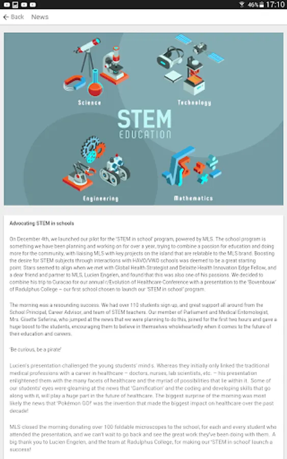 MLS App ta brinda komunidat un eksperensha nobo dor di duna akseso fásil na informashon ku ta relevante komo kliente di laboratorio MLS, huntu ku notifikashon regular tokante e último desaroyonan lokal, regional i internashonal riba tereno di salubridat i e ròl revolushonario di MLS den esaki.