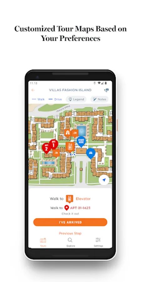 2. Download TourGuide to verify your identity and view your tour. Launch the app when you arrive at your appointment time and follow the step-by-step personalized tour map to explore seamlessly on your schedule.