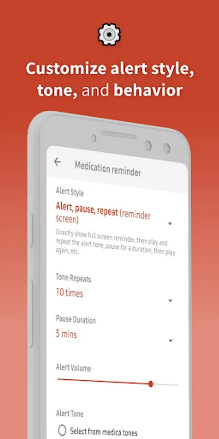 • Customize your medication reminder: tone, volume, and vibration