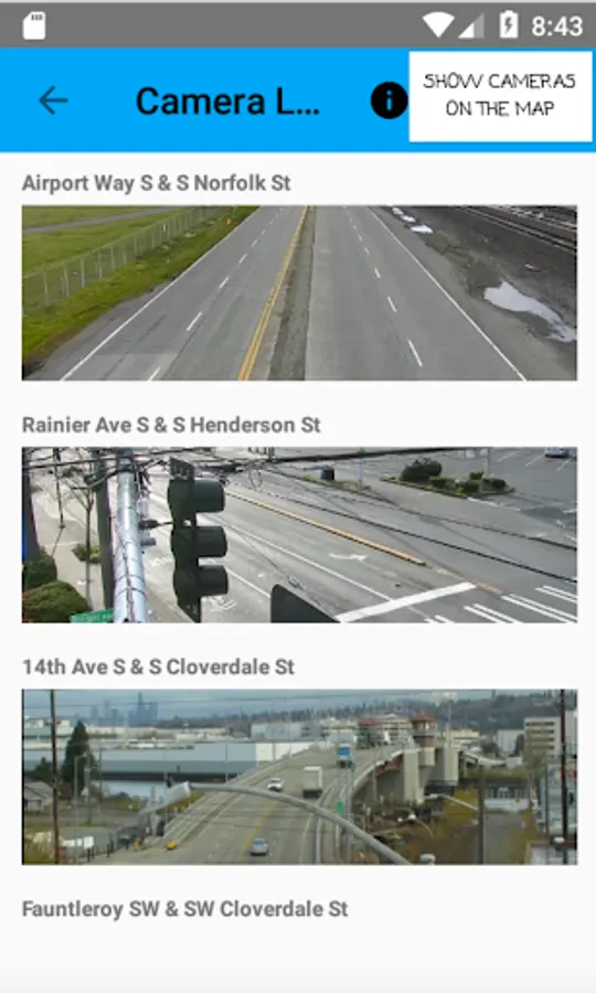The second part displays Seattle traffic cameras on the Google map using JSON serialization, connection checking and user permissions