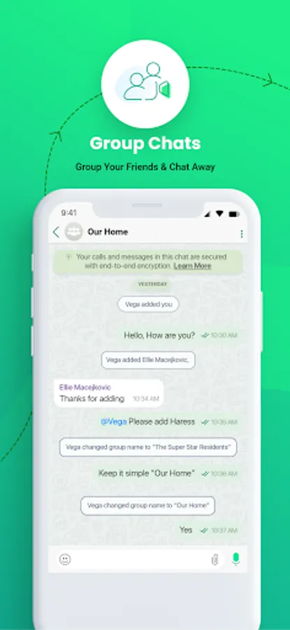 - GROUP CHATS: Communicate with multiple people at once for even faster communication