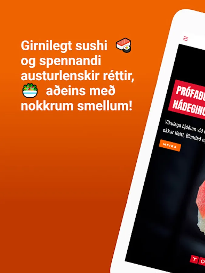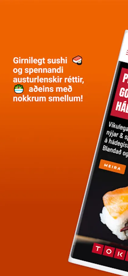 Girnilegt sushi og spennandi austurlenskir réttir, innan seilingar með aðeins nokkrum smellum! Veldu uppáhalds réttina þína, staðfestu pöntunina og veldu að sækja í þeirri Tokyo Sushi verslun sem hentar þér best