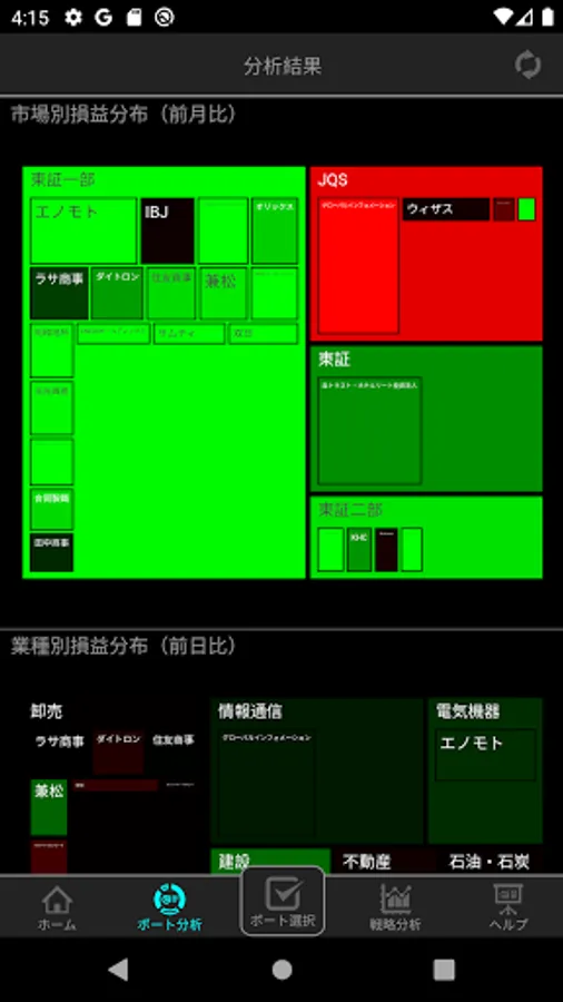 Displayed in an easy-to-see treemap for profit and loss by market and industry