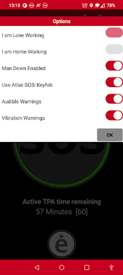 Man Down detection with pre-warning vibration and sound even if the screen is locked